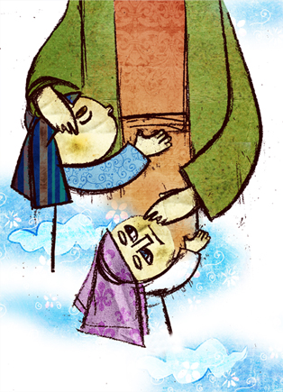آه، مصيبت، مصيبت بر من! من همه اينها را ميديدم و نميتوانستم هيچ كمكى به او بكنم. جوان بار ديگر خنجر را به سينه مادرم، به همان سينه اى كه من ميمكيدم، فرو برد و آنرا شكافت. بعد مادرم را روى شانه اش انداخت و برد.